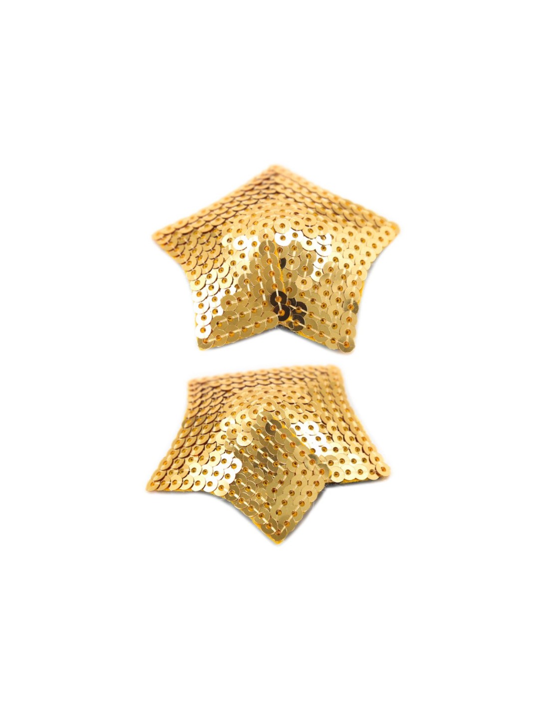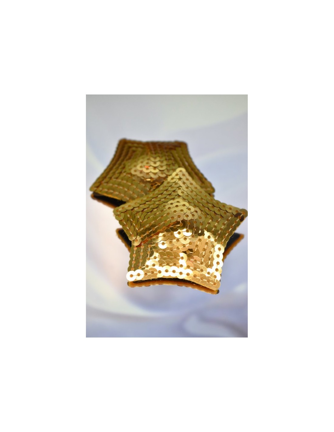 Sublimez votre poitrine avec ces nipples (caches mamelons) adhésifs et réutilisables, en forme d'étoile, recouvert de sequins brillants dorés. Ces nipples brillants, vous donneront une grande dose de charme !