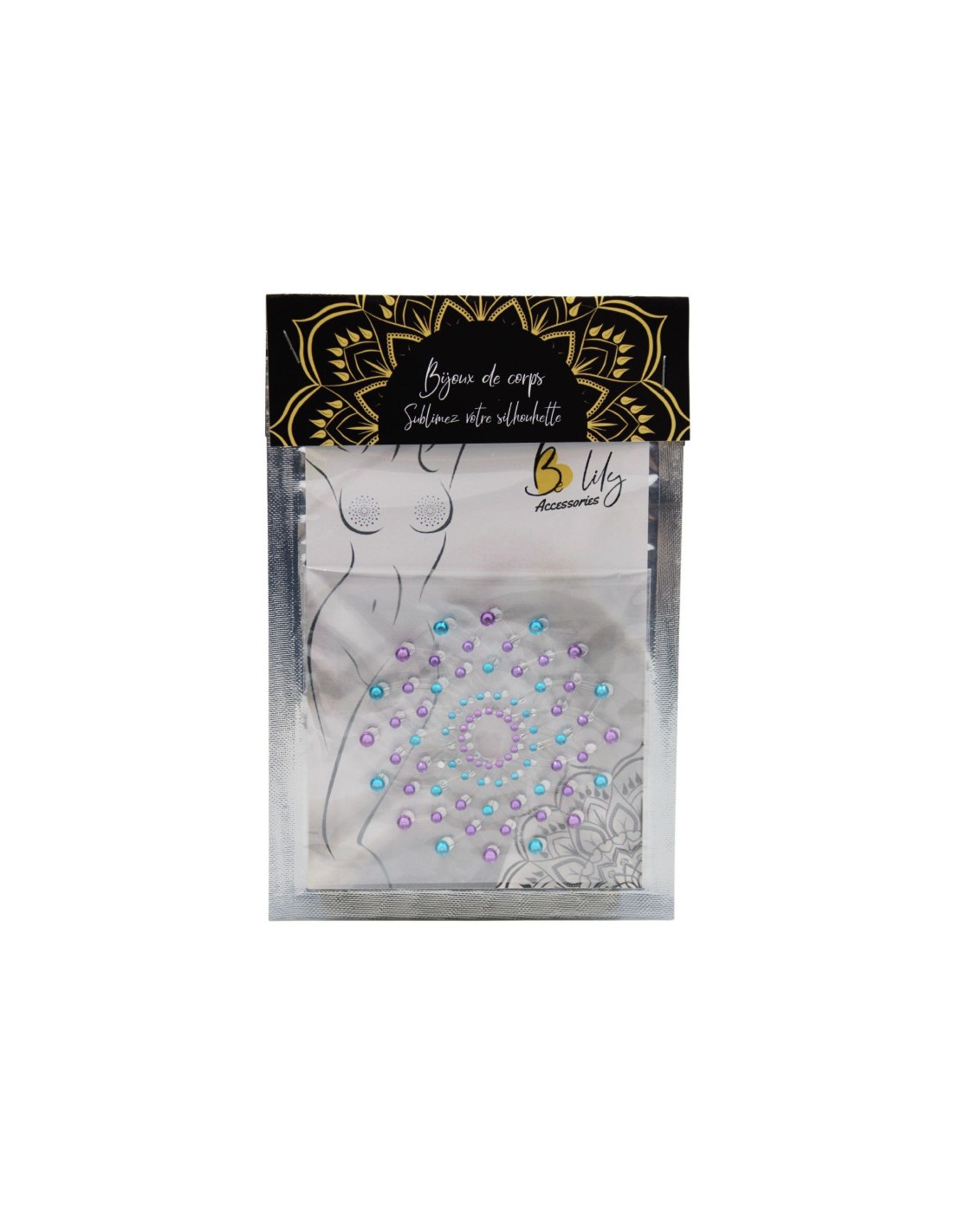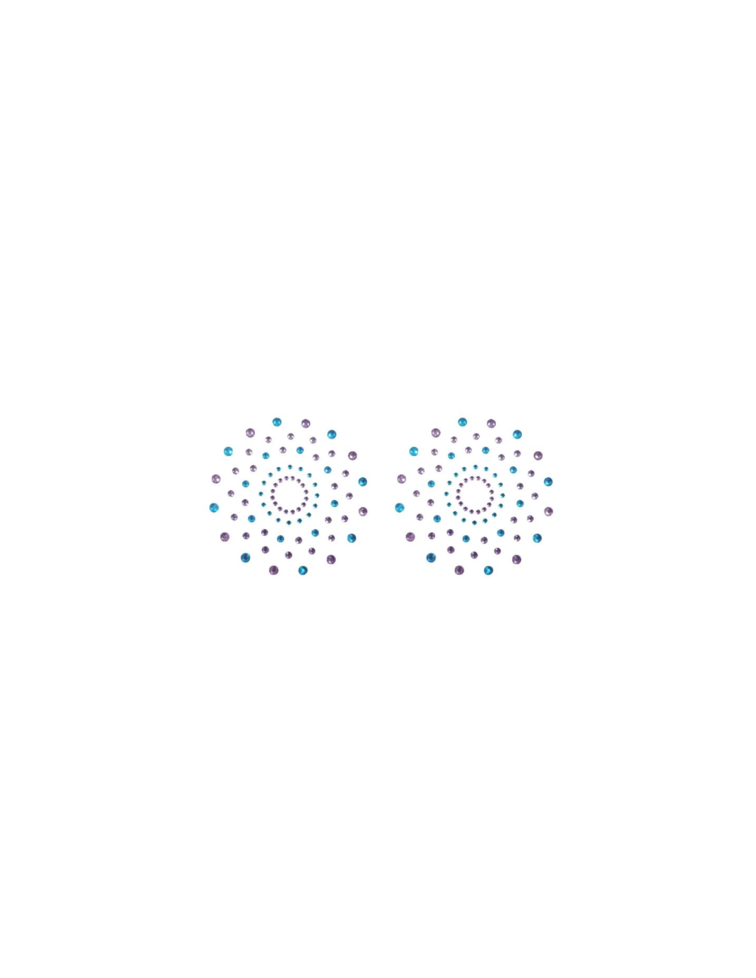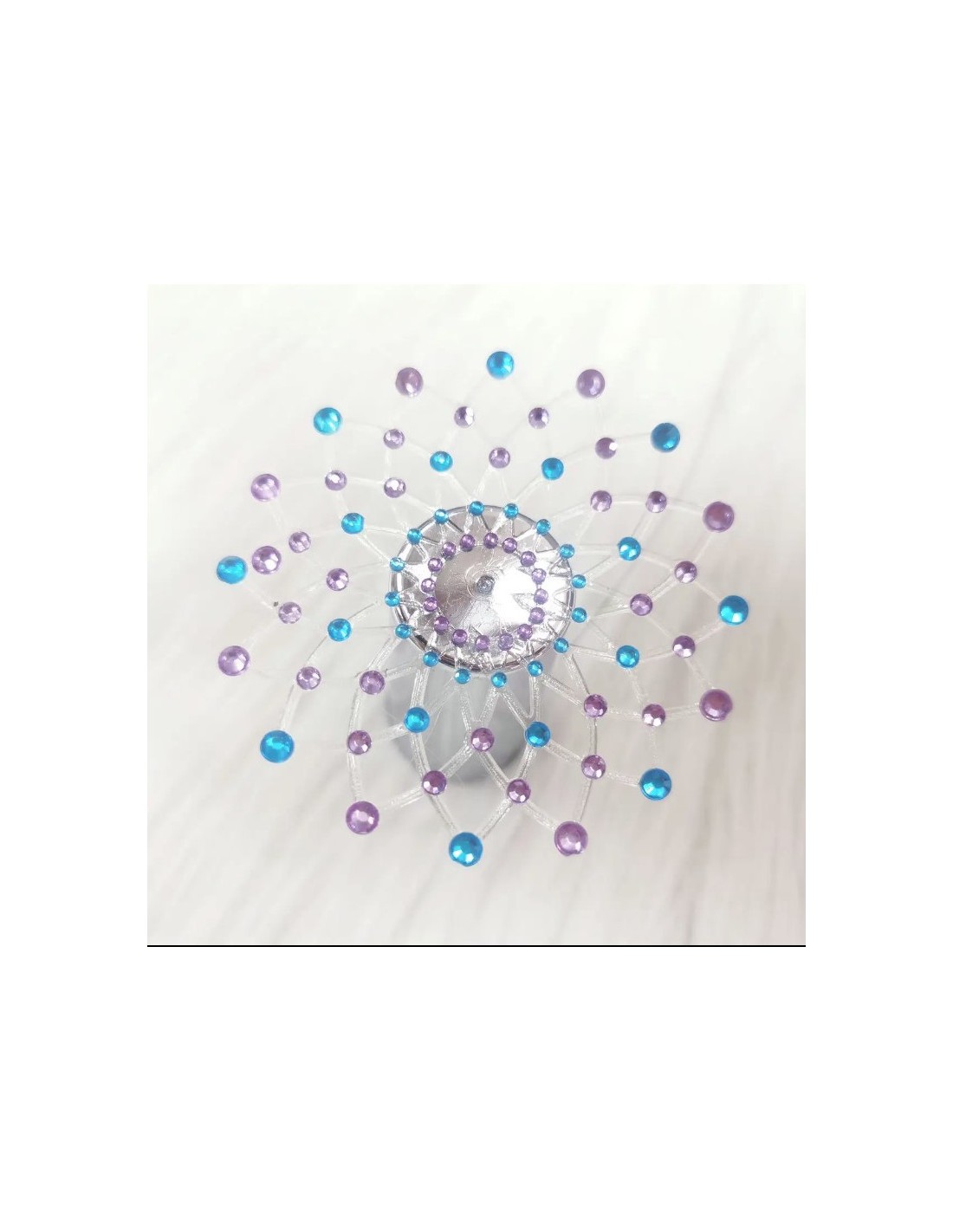 Ces très jolis nipples (cache téton) adhésifs et réutilisables sont fait pour sublimer votre poitrine avec une décoration multi-points en strass Bleu et Violet. Ces nipples brillants, vous donneront une grande dose de charme !