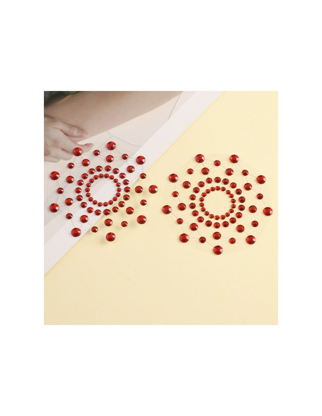 Ces très jolis nipples (cache téton) adhésifs et réutilisables sont fait pour sublimer votre poitrine avec une décoration multi-points en strass rouge. Ces nipples brillants, vous donneront une grande dose de charme !