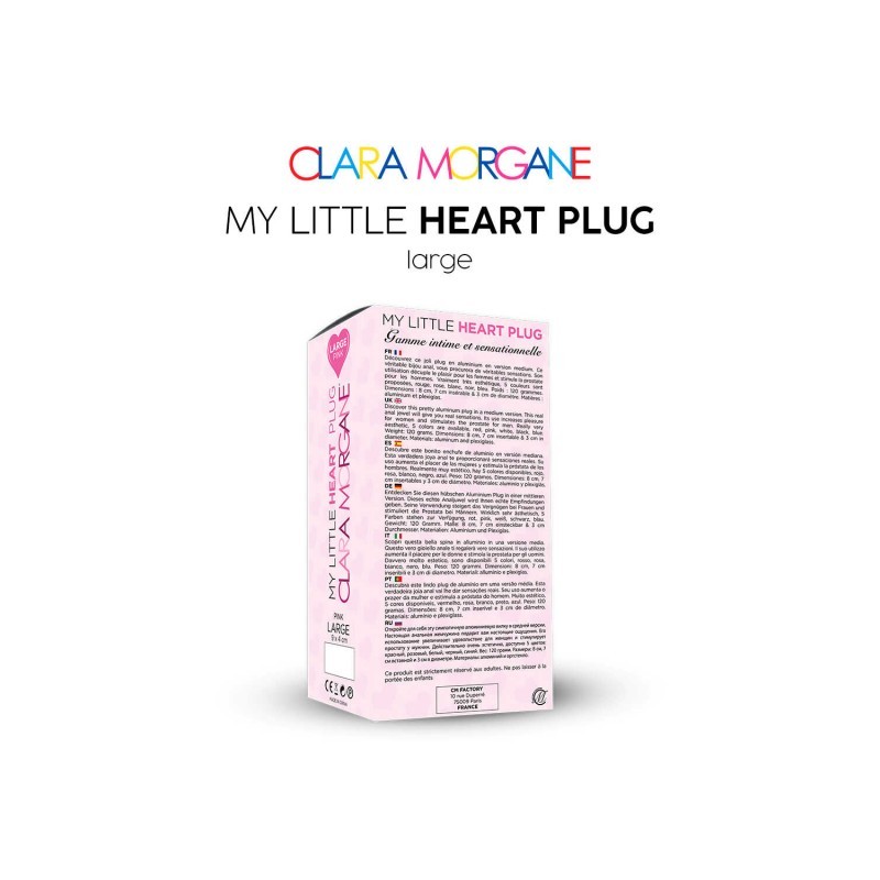 Le « My little Heart » est un plug anal de la marque Clara Morgane, conçu pour allier élégance et plaisir intime. Le modèle en aluminium propose un confort accru grâce à une matière douce, et un design raffiné grâce à un bijou décoratif à la base.