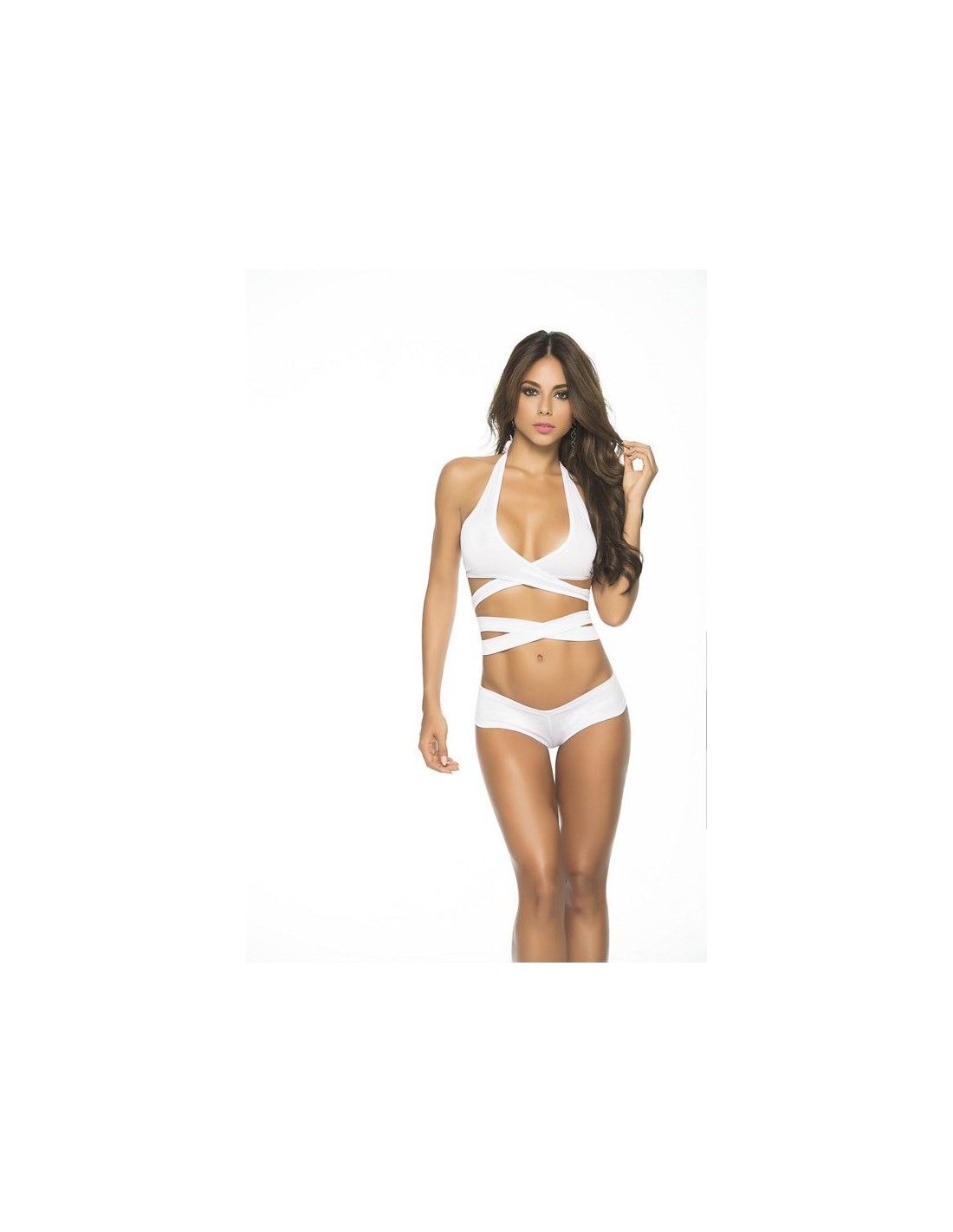 Ce Top Wrap Around blanc s'enroule autour de la taille, se noue dans le dos et autour du cou. Il sera parfait pour la mise en valeur de votre poitrine.