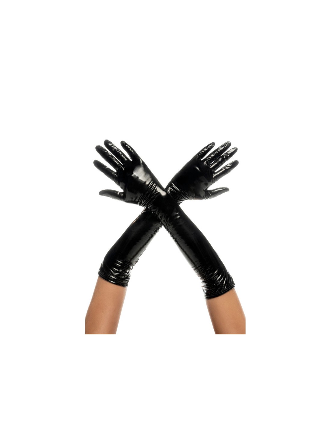 Ces gants en vinyle noir sont avec un cordon de serrage en haut pour un ajustement réglable. Ils seront parfait pour des soirées BDSM.