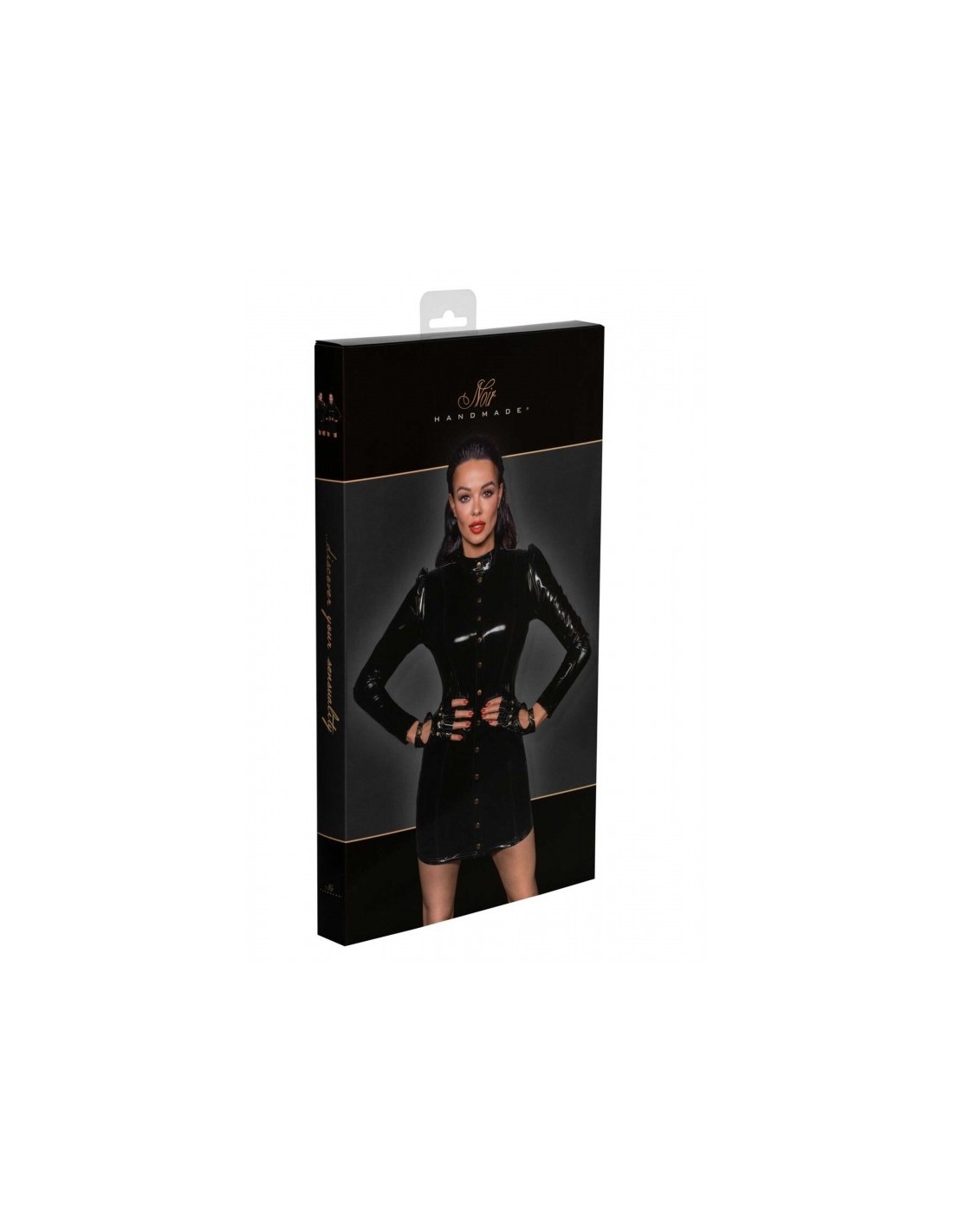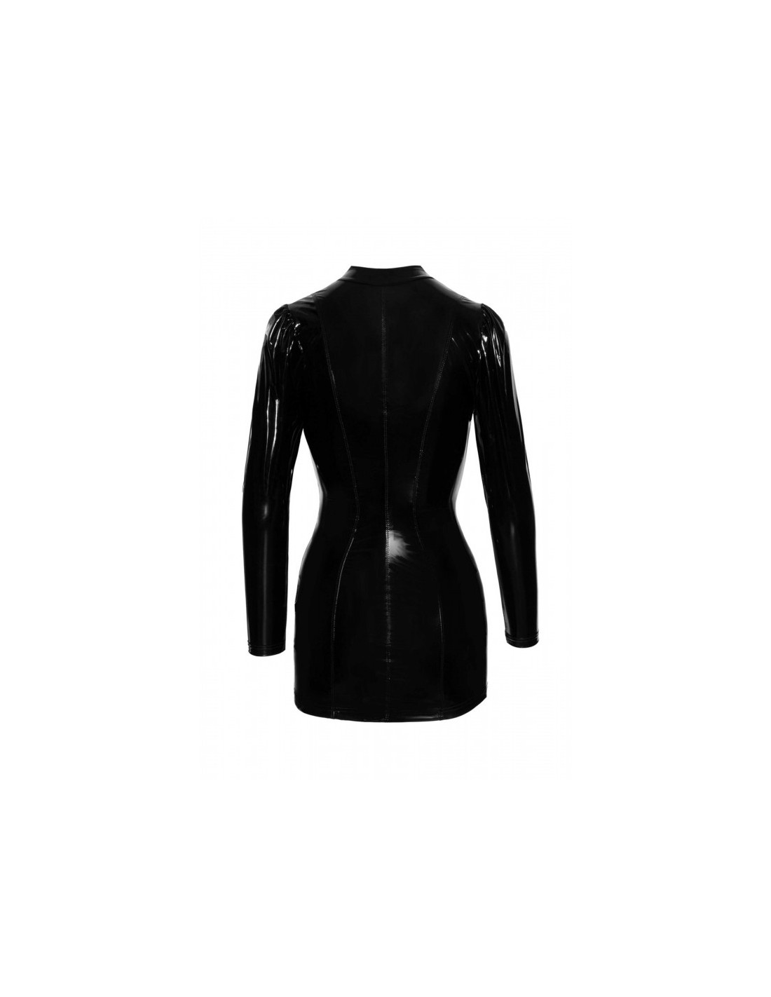 Cette Robe "F246 Courte PVC" est avec les épaules bouffantes et des manches longues, fermée sur le devant du col à l'ourlet inférieur par des fermoirs dorés. Un look classe et tendance, idéal pour toutes les fêtes et vos soirées débridées.