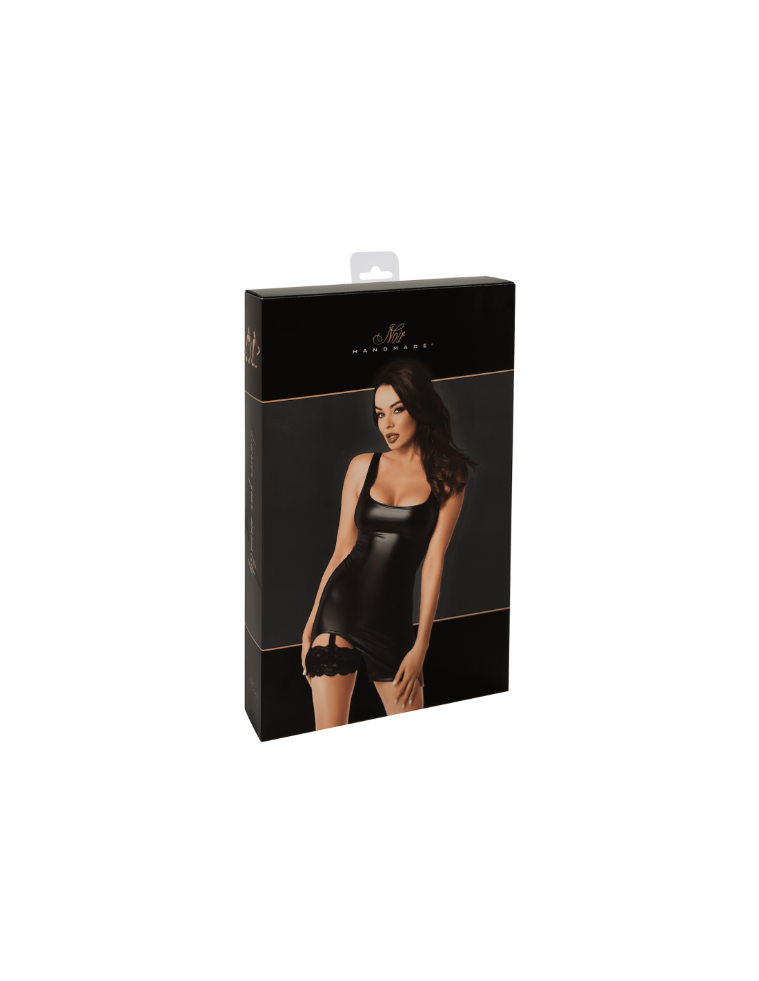 - Détail unique: Une jarretière en dentelle souple et élastique entoure la cuisse, ajoutant une touche inattendue et séduisante au look. Ce détail en dentelle ressort sous la robe, créant un contraste visuel séduisant.