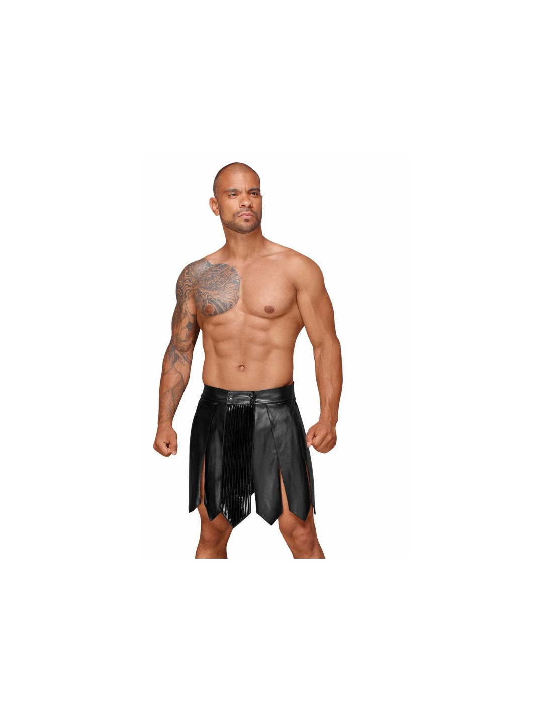 La jupe gladiateur pour homme en simili cuir est composée d'un ornement en PVC plissé sur le devant. Elle sera parfaite pour des soirées spéciales laissant libre court à vos fantasmes.