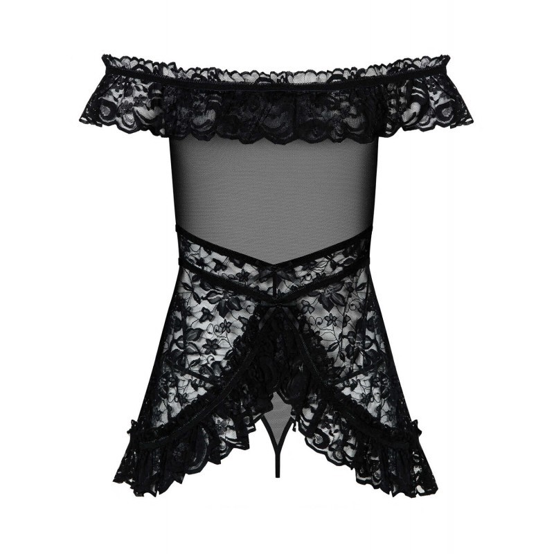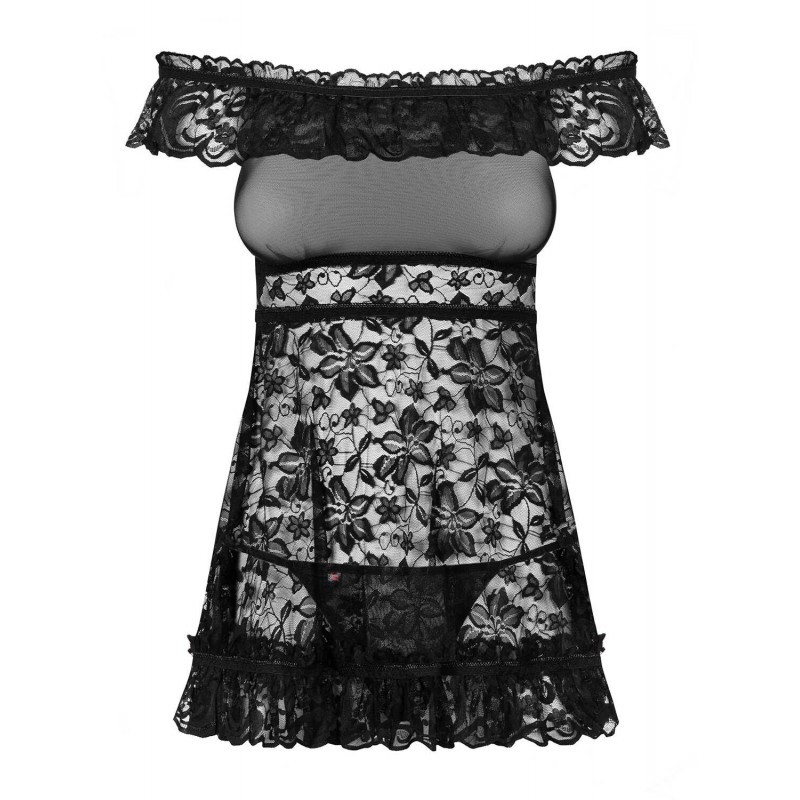 Cette Nuisette "Flores Babydoll Black" sera parfaite pour séduire votre partenaire, en fine maille et dentelle florale. Transparente au niveau de la poitrine pour le côté sexy.