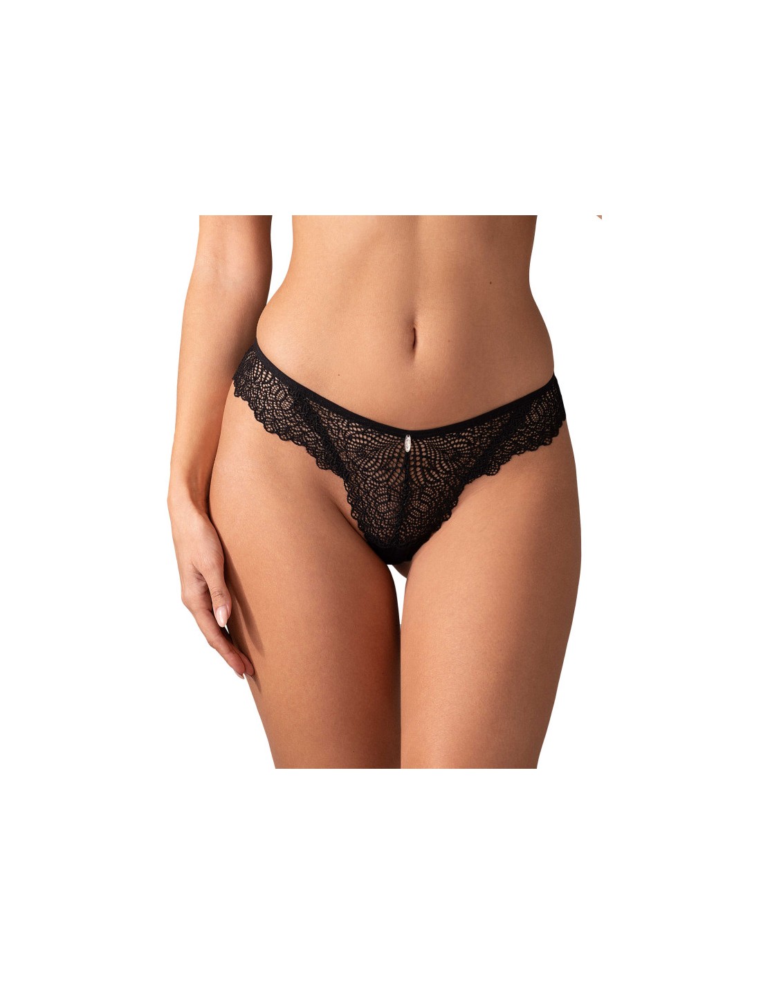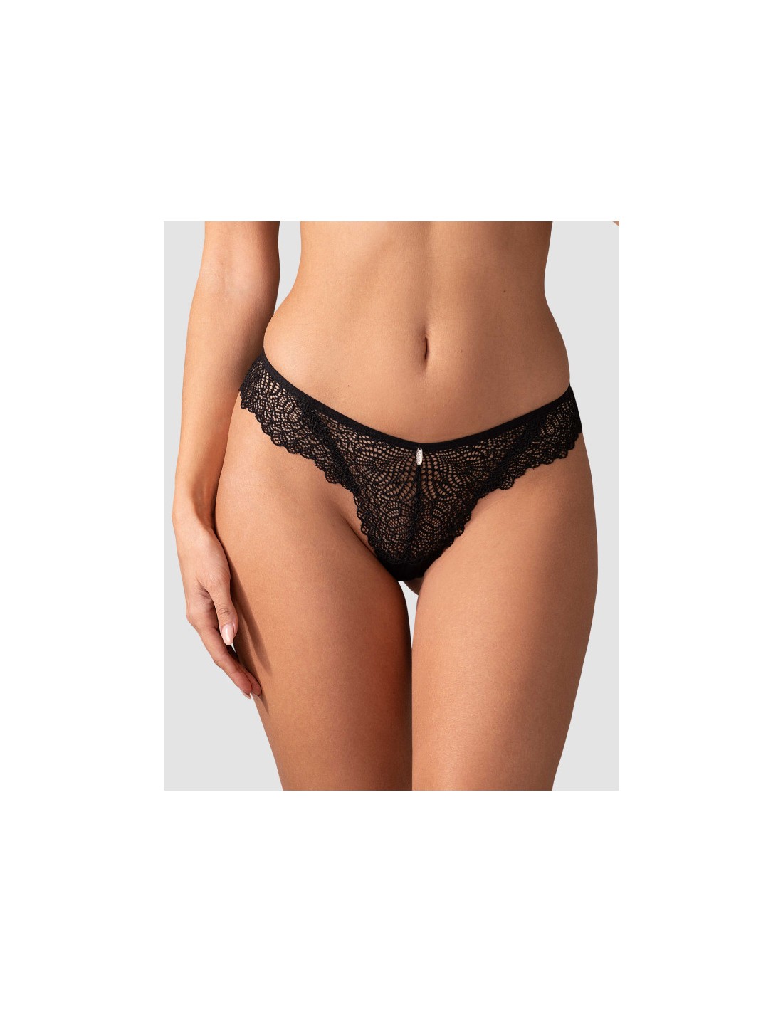 Chic et moderne, le Tanga "Iliosa Black" de style brésilien est fabriqué en dentelle noire, douce, avec un motif chic et contemporain. Le tissu extensible épouse votre corps pour un ajustement parfait, tandis que la fermeture décorative au dos ajoute une touche d’élégance raffinée.
