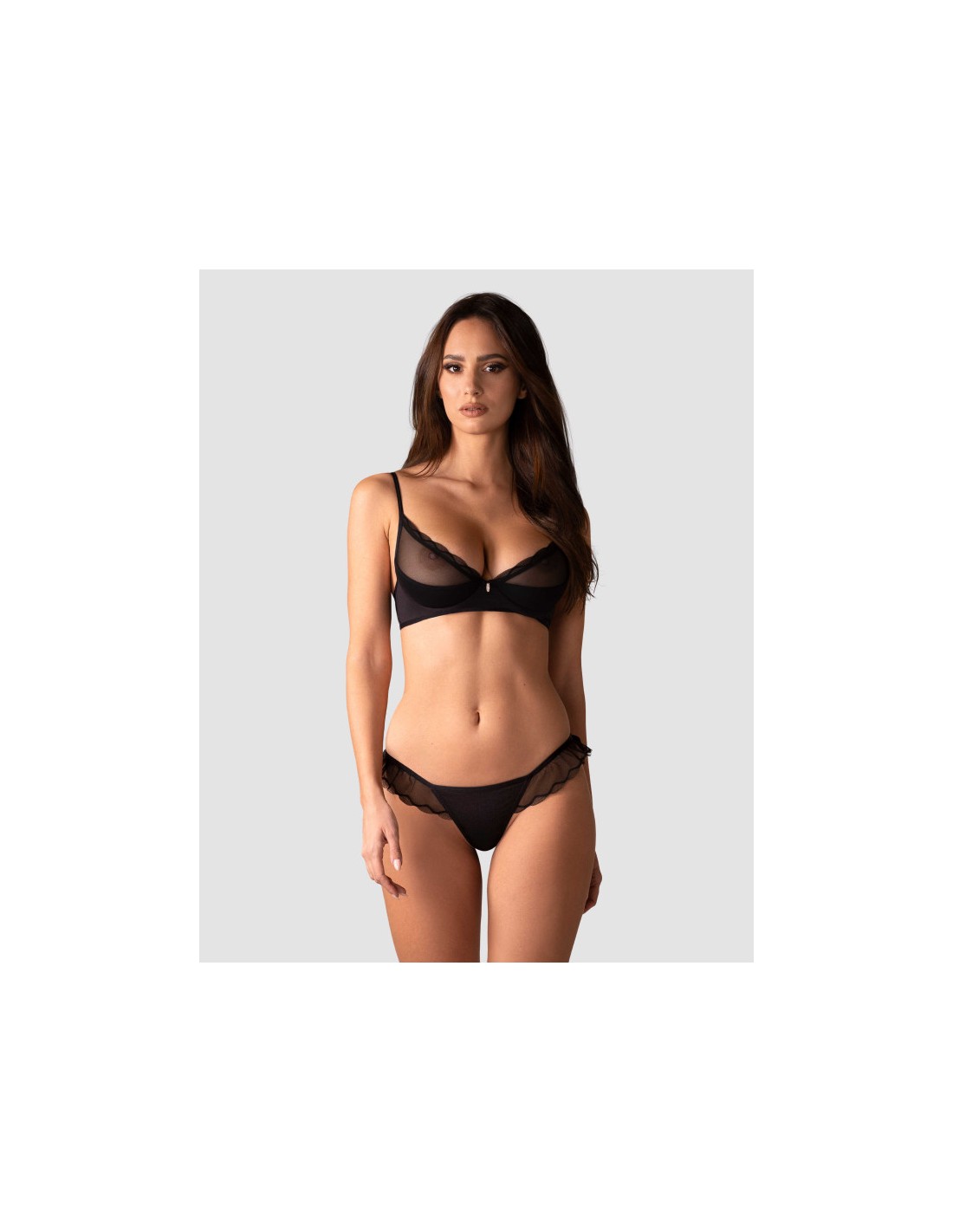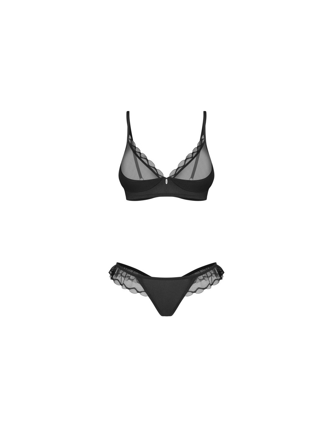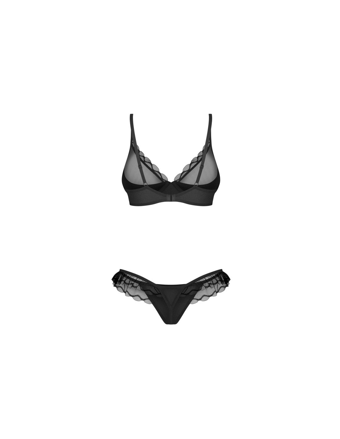 Cet Ensemble 2 Pièces "Stelisa Black", est réalisé dans des matières souples et élastiques. Le soutien-gorge transparent est décoré, le string est rehaussé de tulle. Des bretelles réglables et une fermeture à crochet dans le dos assurent un ajustement parfait.