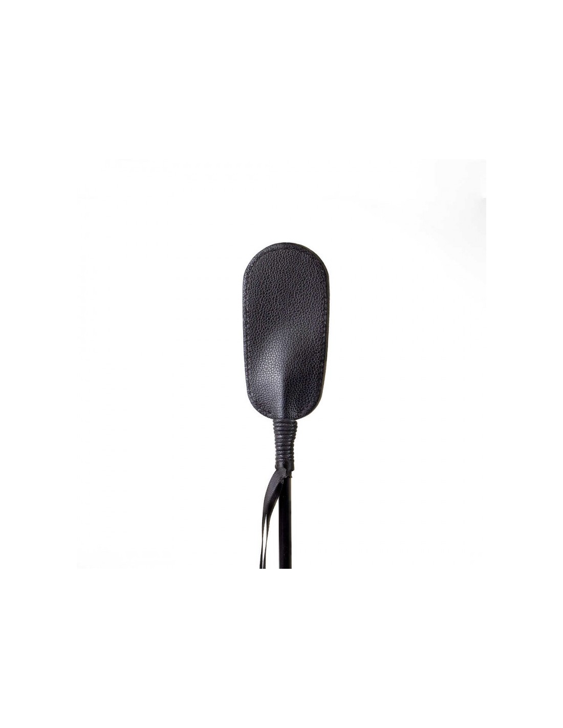 Cravache de forme ovale en cuir synthétique.
