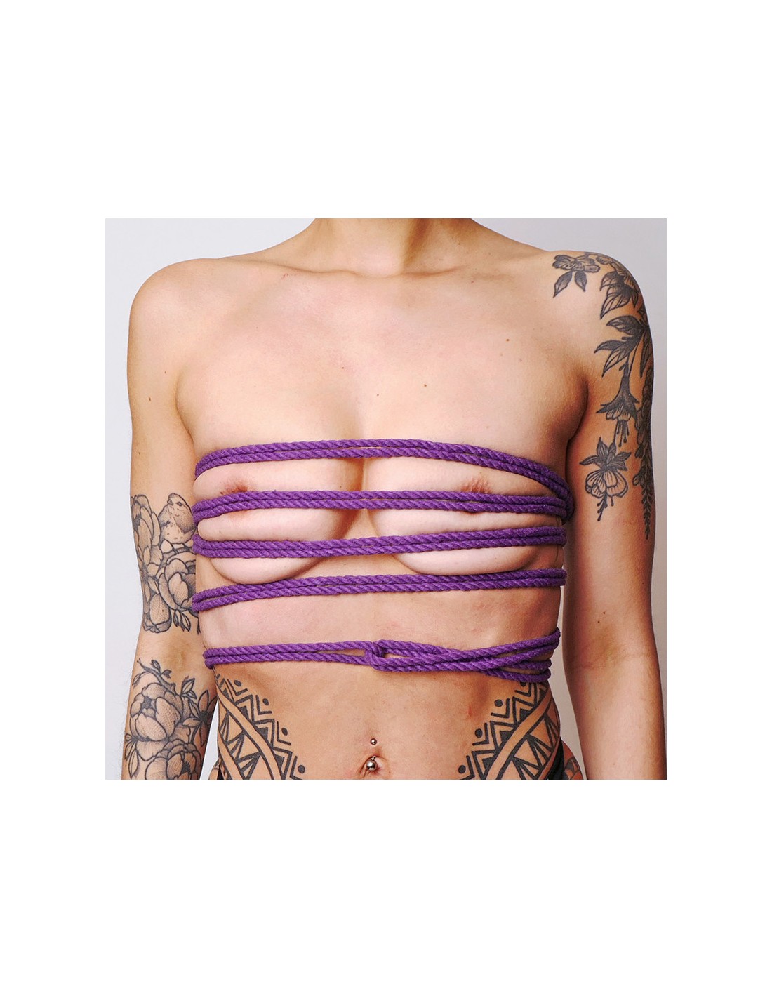 - Une corde en chanvre naturel, teinte naturelle violette, parfaitement adaptée pour le bondage ou l'art du shibari.